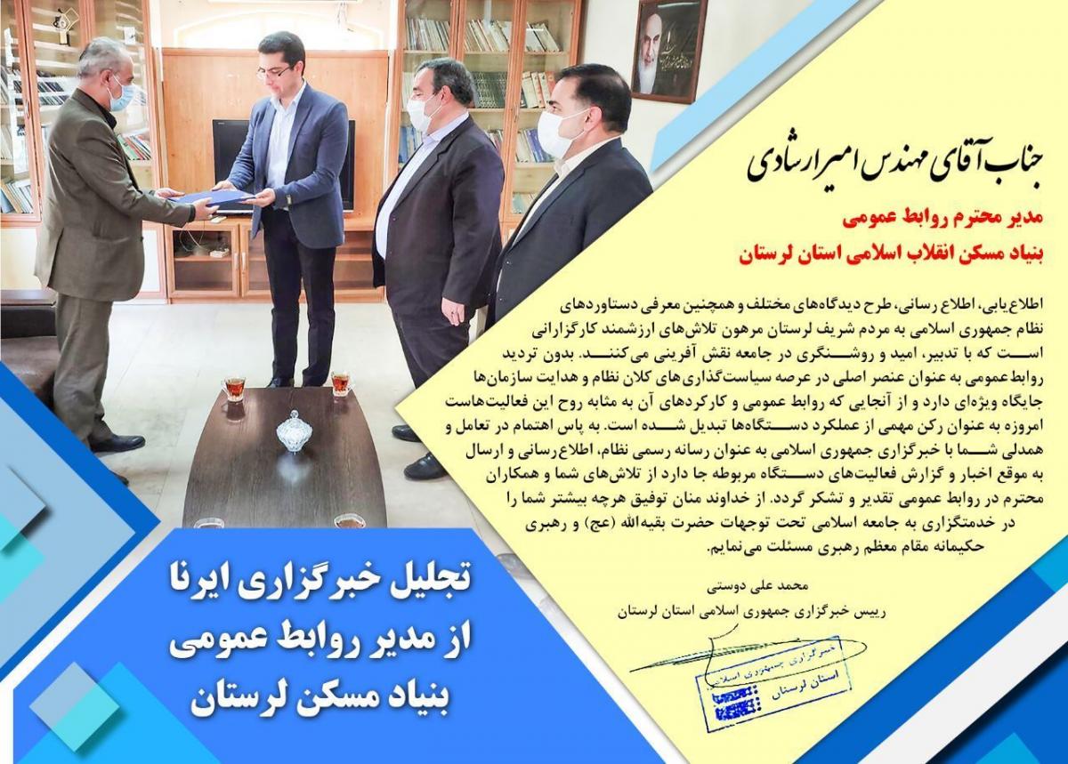 تجلیل ایرنا از مدیر روابط عمومی بنیادمسکن لرستان