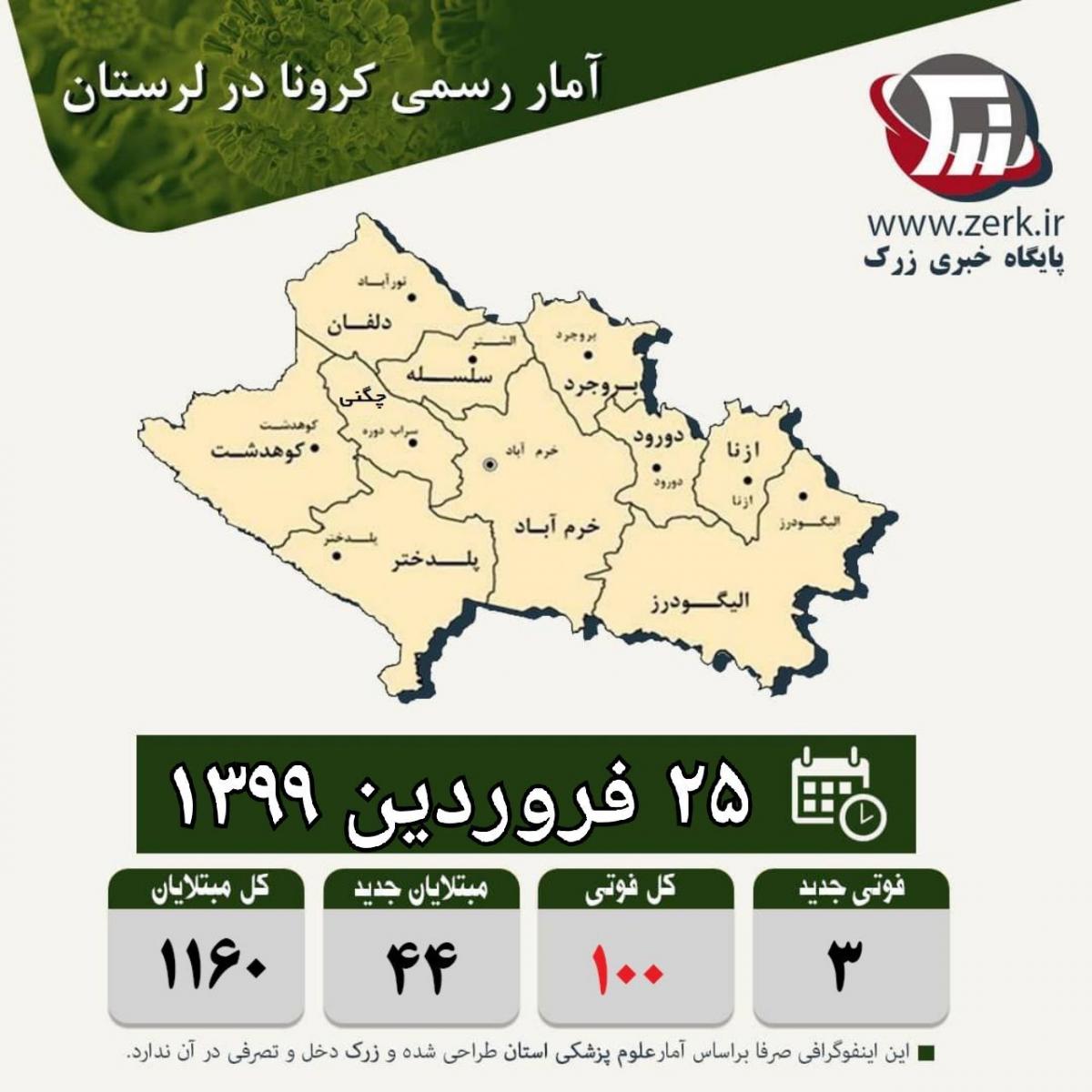 آمار رسمی کرونا در لرستان تا ۲۵ فروردین؛