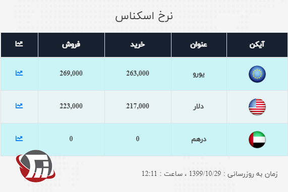 همچنین قیمت یورو در صرافی ملی, ۲۶ هزار و ۹۰۰ تومان درج شده در حالیکه یورو در صرافیهای واقع در شمال و غرب تهران, ۲۶ هزار و ۷۰۰ تومان به فروش میرسد.